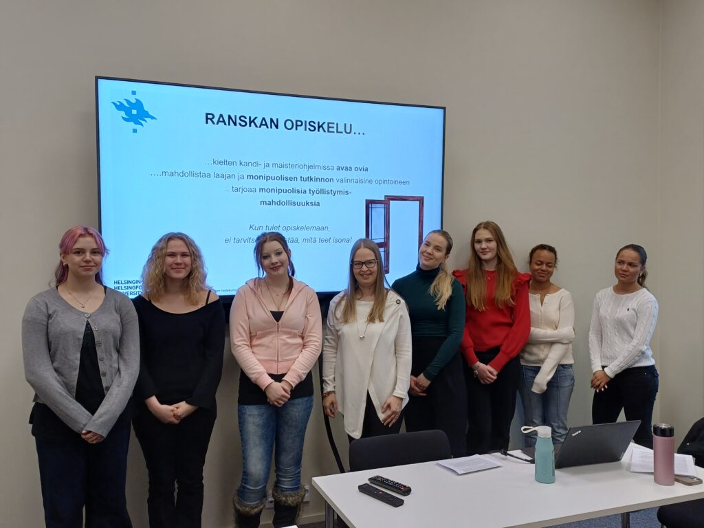 Otamme ranskan opintosuunnassa vastaan myös vierailijoita. Ranskan opettaja Hanna Sydänmaanlakka toi ranskan opiskelijansa vierailulle Lappeenrannan lukiosta.
